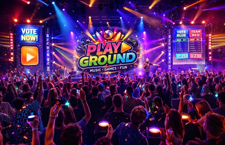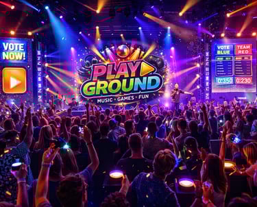 Play-Ground is een feest concept voor Bedrijven, Poppodia, Festivals, Bruiloften, Tentfeesten en Event locaties. Een Totaal beleving waar Licht, Geluid, Beeld, Games en Interactie allemaal samenkomen.